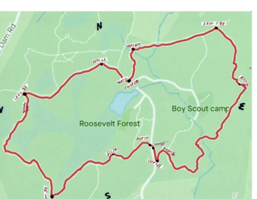 A well-marked single and double-track 2.2 mile loop with 131 feet of elevation gain per loop.